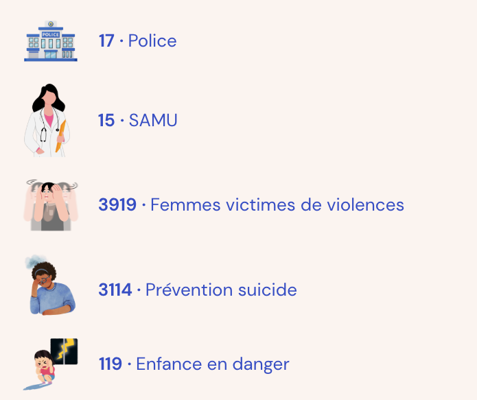 Si vous ou une personne êtes en danger immédiat, contactez sans attendre les services d’urgence :